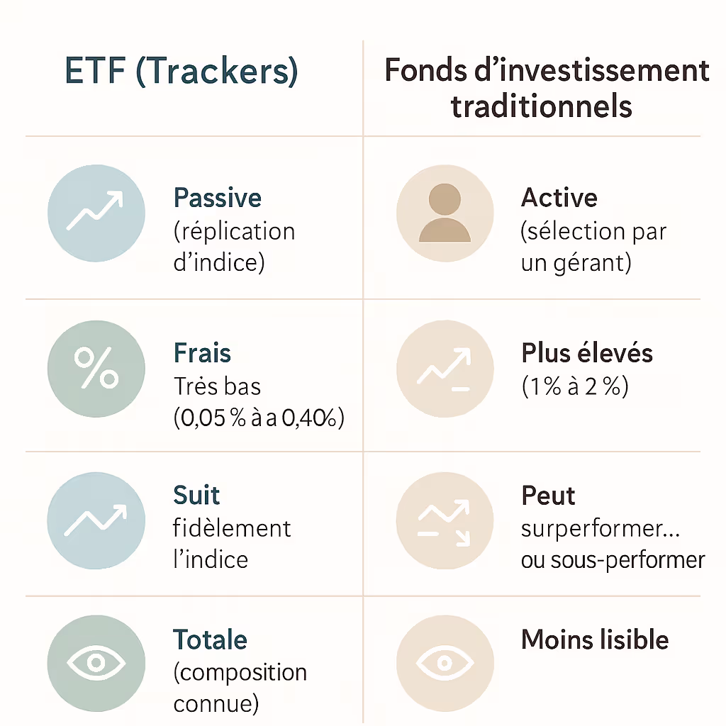 👉 Utilisés seuls ou en complément de fonds actifs, d’actions en direct ou de produits structurés, les ETF constituent une brique essentielle d’un patrimoine financier équilibré.